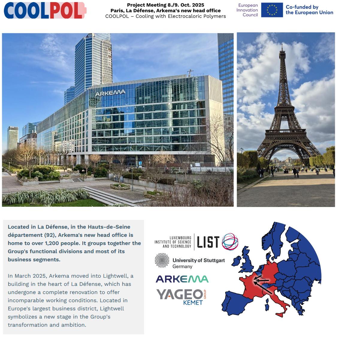 The 1st review meeting of COOLPOL took place at Arkema's new head office in Paris, La Défense on 8/9th Oct. 2025.